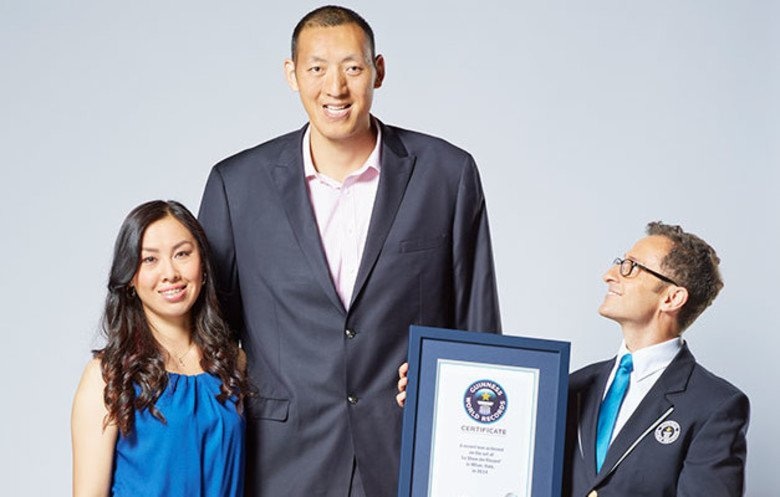 Кстати, Сунь Минмин в 2007 году был занесен в список самых высоких людей на земле. Также этот спортсмен сумел в 2012 году завоевать титул чемпиона Китая по баскетболу в составе «Бэйцзин Дакс». А еще великан снимался в разномастных телевизионных шоу, посвященных гигантам, еще до знакомства с женой, и даже участвовал в постановке трюков в фильме «Час Пик 3», в котором снимались Джеки Чан и Крис Такер.