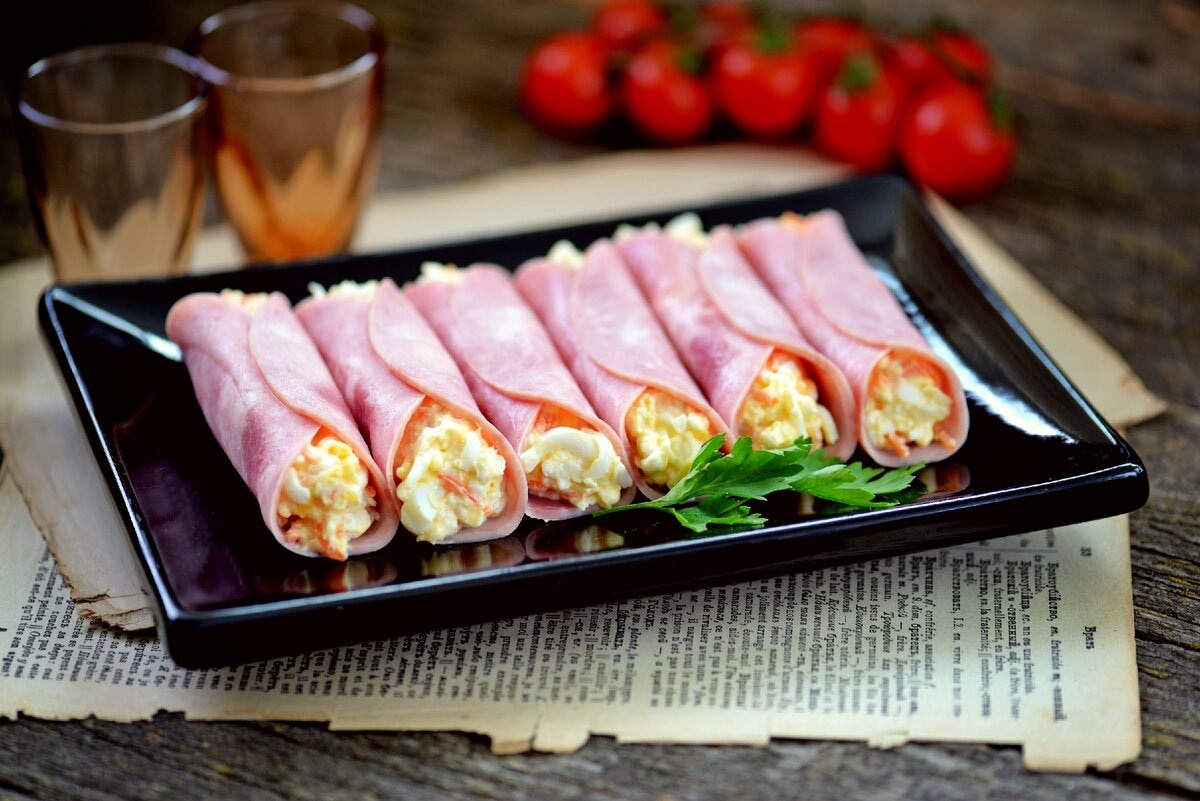 Рулетики из ветчины — быстрая закуска.