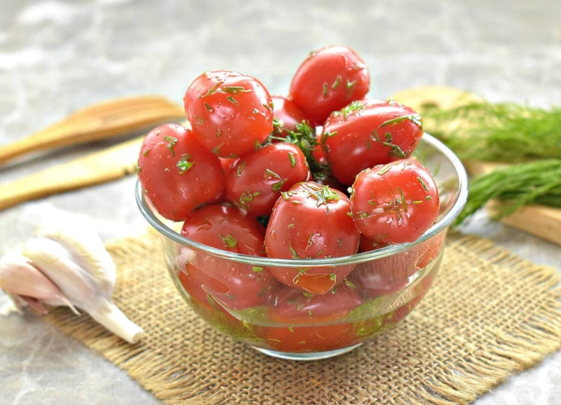На третий день помидоры готовы. Достаньте их и подавайте охлажденными в качестве гарнира к мясу или рыбе.