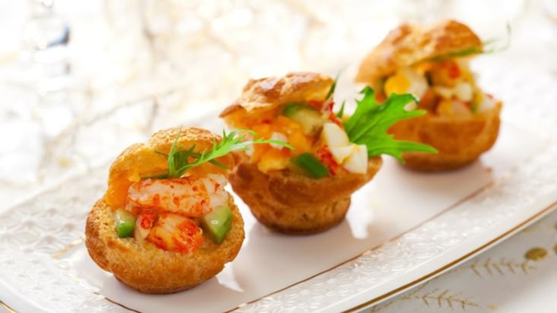 Аппетитные профитроли с креветками — закусочный несладкий вариант угощения, которое давно перестало быть исключительно десертом.