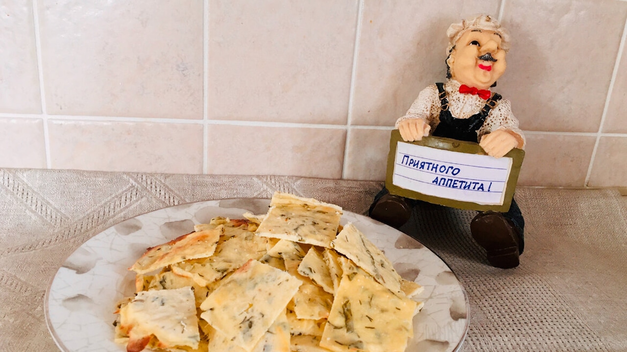 Отправляют противень в предварительно разогретую до 200 °C духовку на 15 мин. Признаком готовности станет золотистый румянец. В этот момент пласт уже можно вынимать, но, если хочется придать снекам побольше хрусткости, выдерживают его еще 5–10 мин.
