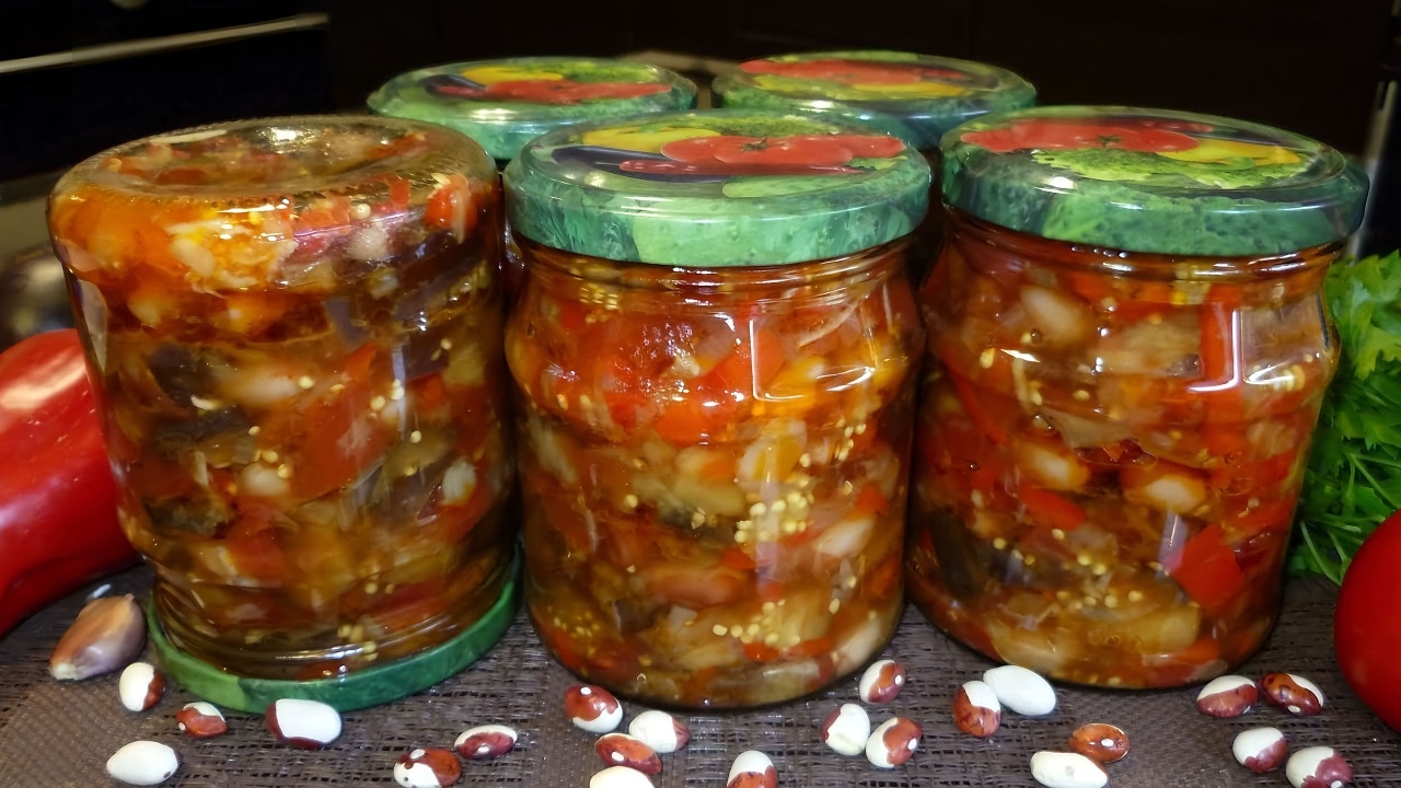 Баклажаны с фасолью на зиму — это ароматное, сытное и питательное блюдо, сочетающее в себе несколько видов овощей и пикантный томатный соус.