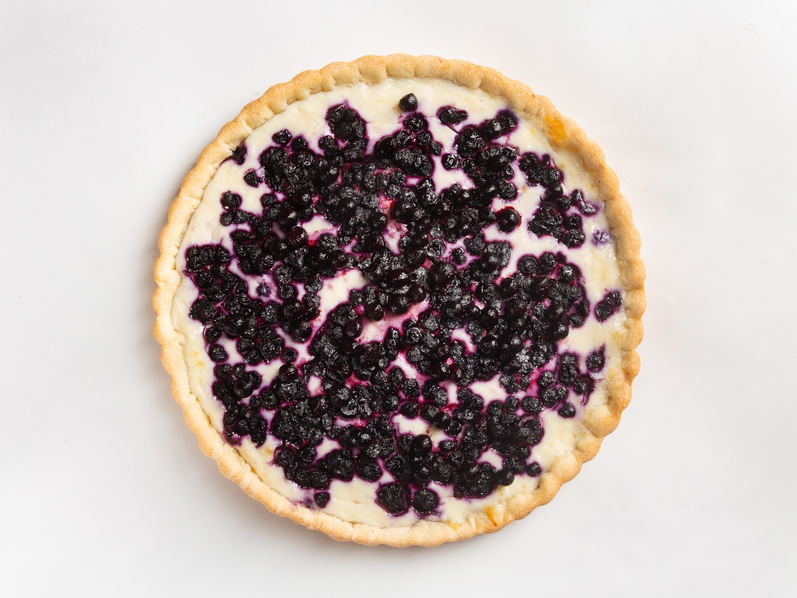 На остывший корж с бортиками ложкой выкладывают густой крем, сверху раскладывают предварительно вымытую смородину и ставят пирог в холодильник на 4 часа. Как только начинка стабилизируется, тарт нарезают на кусочки и подают на стол к чаю или кофе.