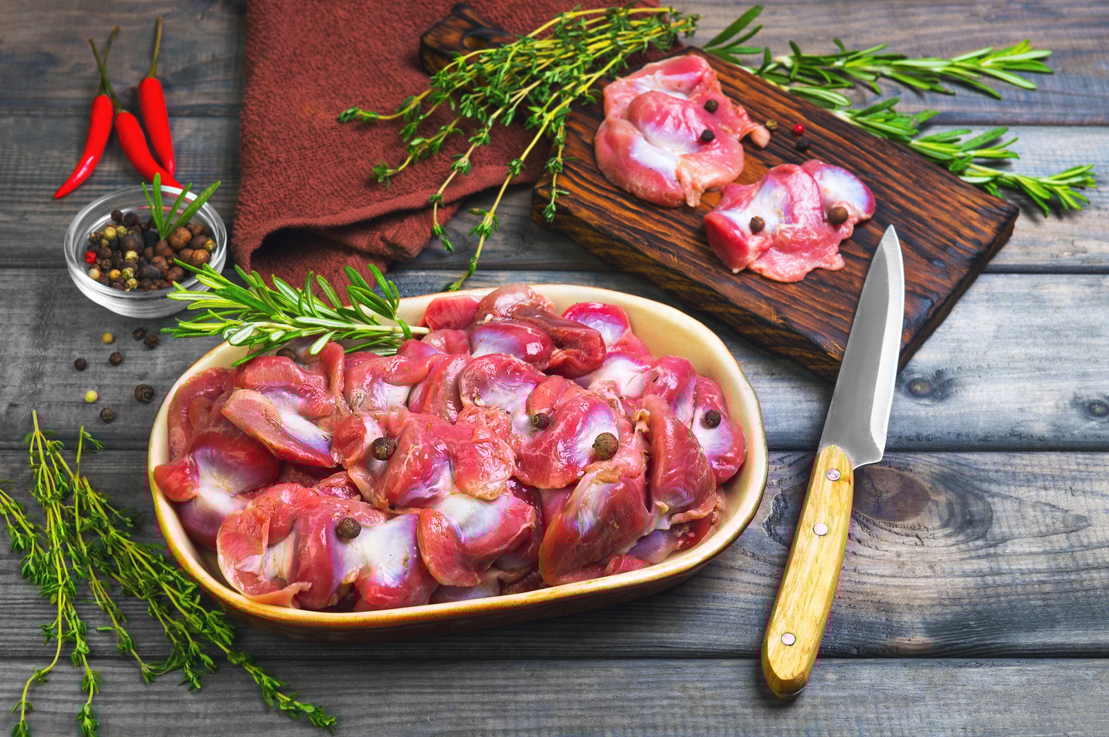 Растворите 1–1,5 столовые ложки соли в 1 л холодной воды. Опустите желудки в раствор на 1 час. Рассол поможет удалить остатки крови и запустит процесс размягчения тканей.