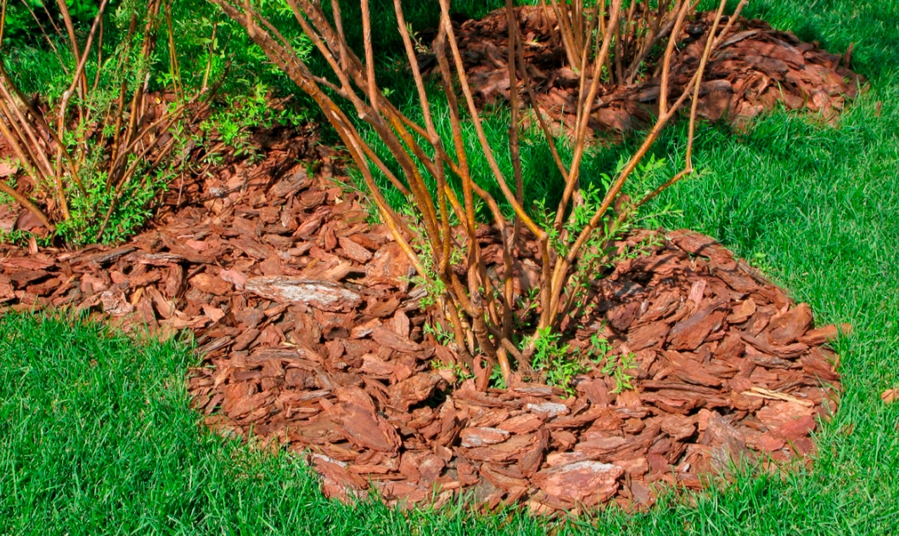 Важно ориентироваться не только в особенностях материалов, но и в технике распределения мульчи. Например, предварительно почву обязательно рыхлят — иначе сформируется препятствующая прохождению кислорода и влаги земляная корка. А еще покрытие не стоит укладывать вплотную к стволам деревьев — в этих местах начинается гниение и развиваются грибки.