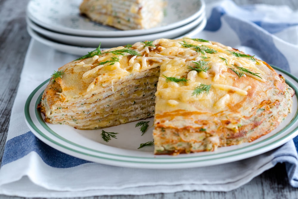 Блинный курник – блюдо, сочетающее в себе текстуру тонких блинчиков с пикантной начинкой из курицы, грибов, риса и яиц. Это делает его прекрасной закуской для праздничного стола.