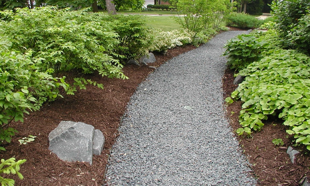 Для более основательных подходов идеален гравий. Правильная подготовка гарантирует долговечность. Сначала на место будущей тропинки укладывают и трамбуют подушку из глины и песка. Затем насыпают сам камень, который тоже требуется уплотнить.