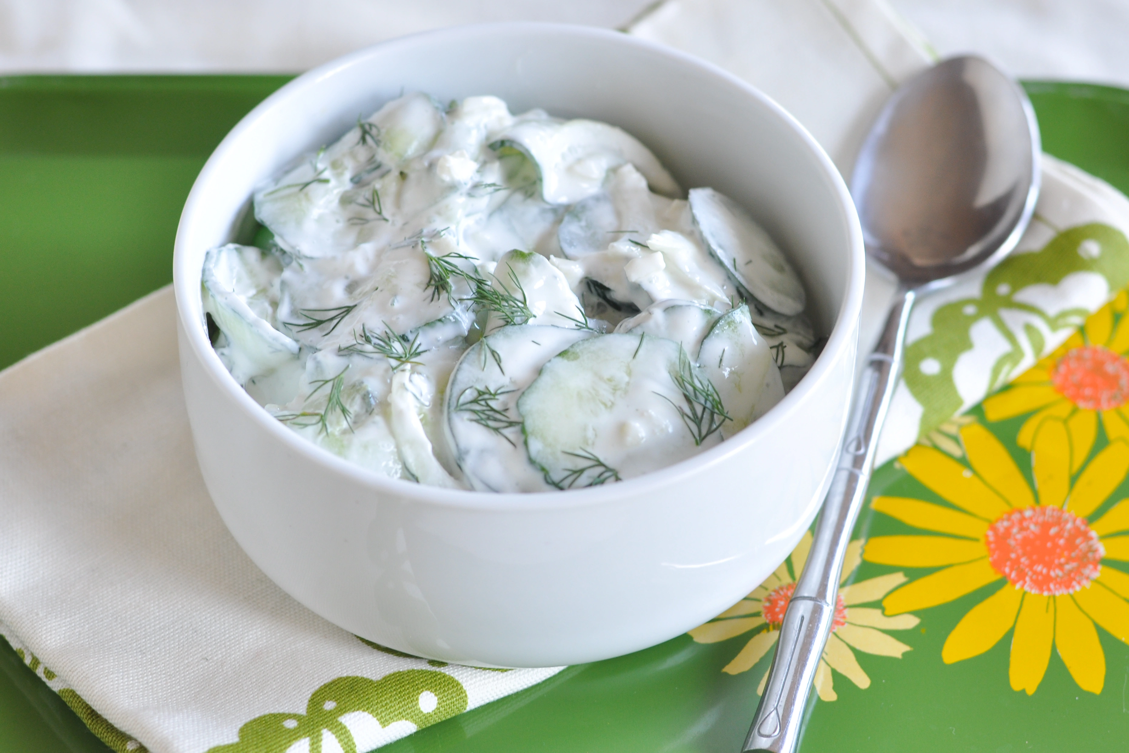 Если вместо йогурта использовать творожный сыр, масса получится густой — и ее можно будет использовать в качестве начинки для рулетиков из тех же огурцов, продольно нарезанных пластами.