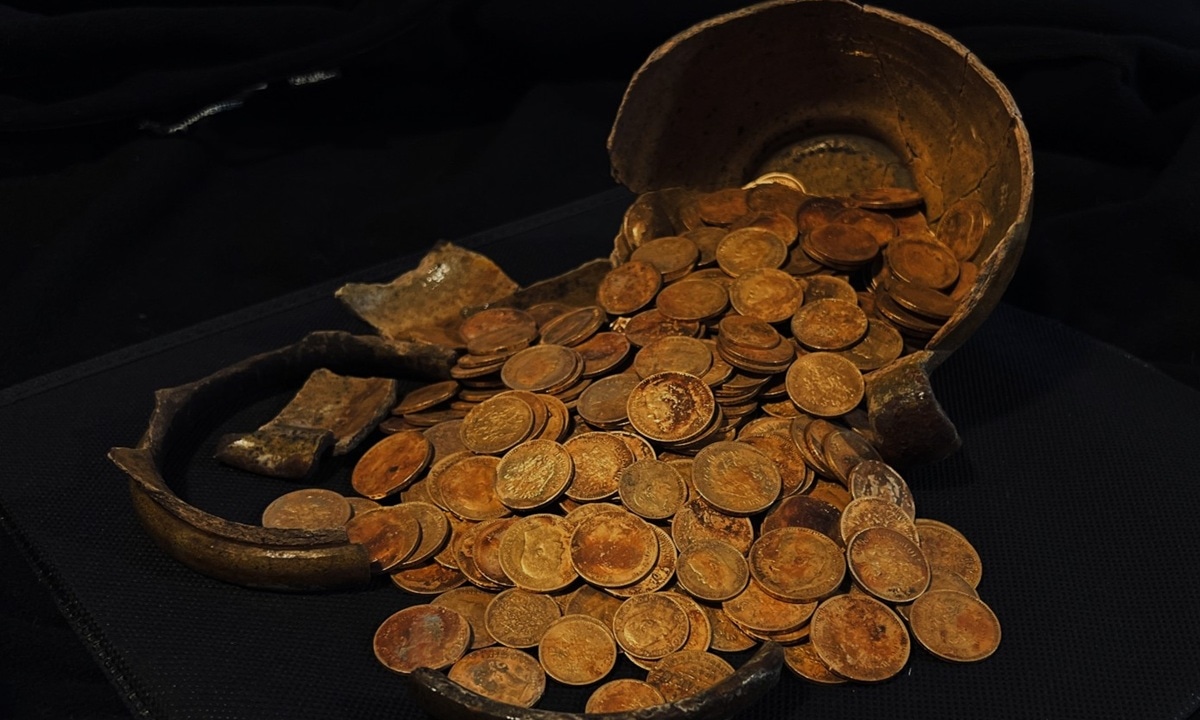 Раскопки проводились перед началом строительства нового здания. Под одним из таких оснований исследователи наткнулись на глиняный сосуд, доверху заполненный царским золотом. Как объяснили в Институте археологии РАН, тайник располагался под фундаментом – хозяева дома рассчитывали, что в случае опасности ценности будут в сохранности.