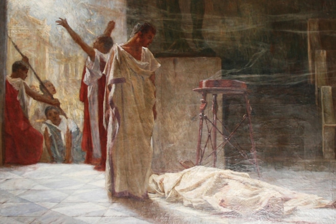 После убийства Цезаря Антоний поспешил перехватить инициативу, на некоторое время занял в Риме главенствующее положение. Умение красиво излагать мысли пригодилось консулу в борьбе с претендентами на власть. Его пламенная речь с окровавленной одеждой Юлия в руках практически сподвигла народ на войну со сторонниками убийц Цезаря.