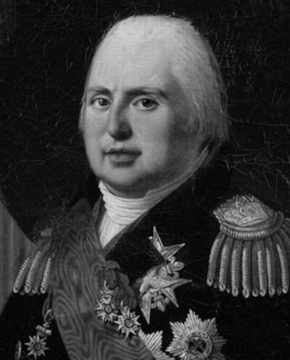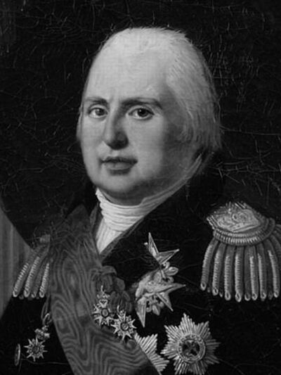 В 1798 году монарха приютил в Митаве император Павел I, его резиденцию называли Версалем в России. После сближения Санкт-Петербурга с Францией отношения между бывшими союзниками стали напряженными, Людовик XVIII покинул страну и обосновался в Польше. По дороге беглый французский правитель попал в неловкую ситуацию: русский офицер отказался уступать ему комнату в гостинице, зная, что перед ним стоит представитель династии Бурбонов.