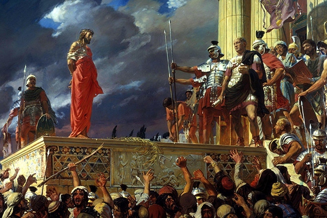 Совет приговорил Христа к смерти, но это решение не было окончательным, так как итоговую точку в аналогичных делах мог поставить исключительно прокуратор. И вот появился он – Понтий Пилат, одетый в белоснежный плащ. Это действо получило в будущем название «суд Пилата».