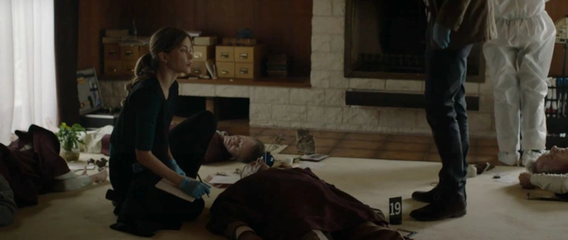 В фильме, где главный герой в союзе с правоохранительными органами пытается разобраться в злодеяниях местной секты, партнерами Хукс по площадке стали Эрик Бана и Сэди Синк.