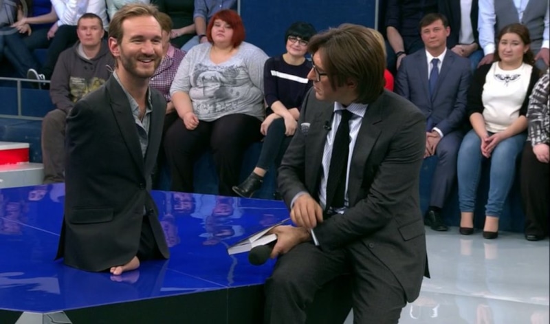 - Одно из самых просматриваемых видео с Вуйчичем — то, как он плавает. На воде мужчина удерживается благодаря движению недоразвитой конечности.