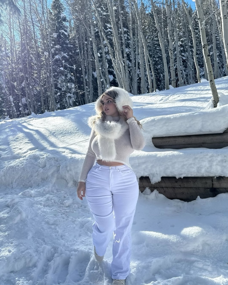 Сейчас Анастасия продолжает радовать публику откровенными снимками. В начале января 2025-го Квитко, количество подписчиков которой в запрещенной соцсети перевалило за 13,1 млн, опубликовала серию фотографий на фоне зимнего пейзажа. Модель позировала в короткой сливочной куртке, белоснежной водолазке, шапке-ушанке и длинных брюках необычного оттенка, напоминающего берлинскую лазурь.