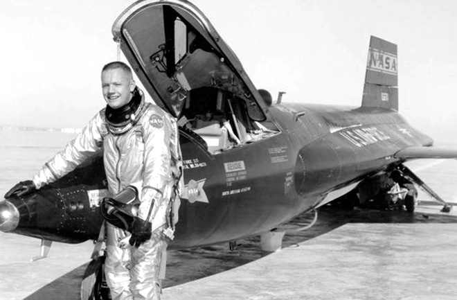 - с октября 1958 года Армстронг состоял в группе пилотов, совершающих экспериментальные полеты на ракетоплане Х-15, с 1960 по 1962 год он совершил всего 7 полетов, однако ни разу не достиг границы с космосом;
