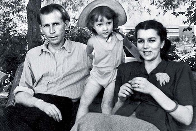 В конце концов Фридман сдалась и ответила согласием на предложение руки и сердца. А в 1949-м подарила мужу дочь Елену. Сохранилось архивное семейное фото. Казалось, в жизни супругов все складывалось гармонично, несмотря на скромный быт: артисты до получения собственного жилья обитали прямо в театре, а колыбелью для новорожденной служил чемодан.