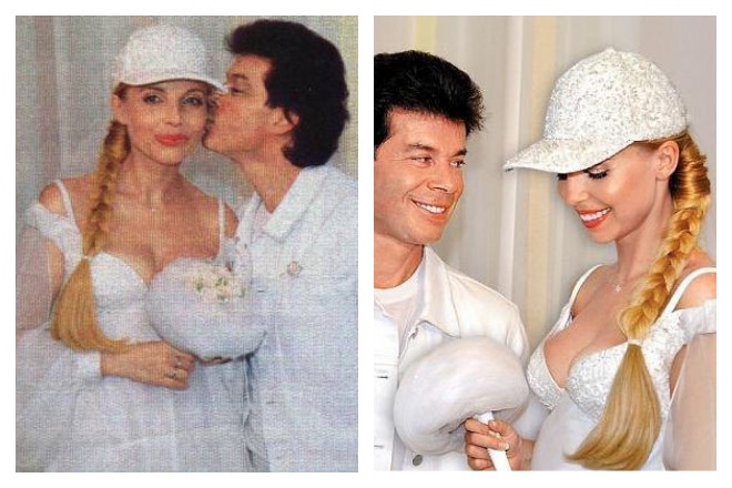 Стоит отметить, что подвенечный наряд Муравьевой-Газмановой заметили даже за рубежом. Дизайнером выступил Валентин Юдашкин. В задачу маэстро входило спасти прическу невесты от ветра, поскольку жених заявил, что не просто облачится в белый джинсовый костюм, но и прибудет на красном спортивном кабриолете. Гениальный модельер нашел выход и в качестве аксессуара к дерзкому короткому платью вручил бухгалтеру кепку.