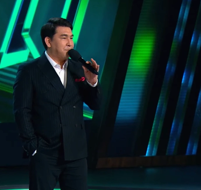 Азамат как ведущий давал подсказки гостям. Он рассказывал биографию участников, факты о них, а также включал искаженные демозаписи их голосов.