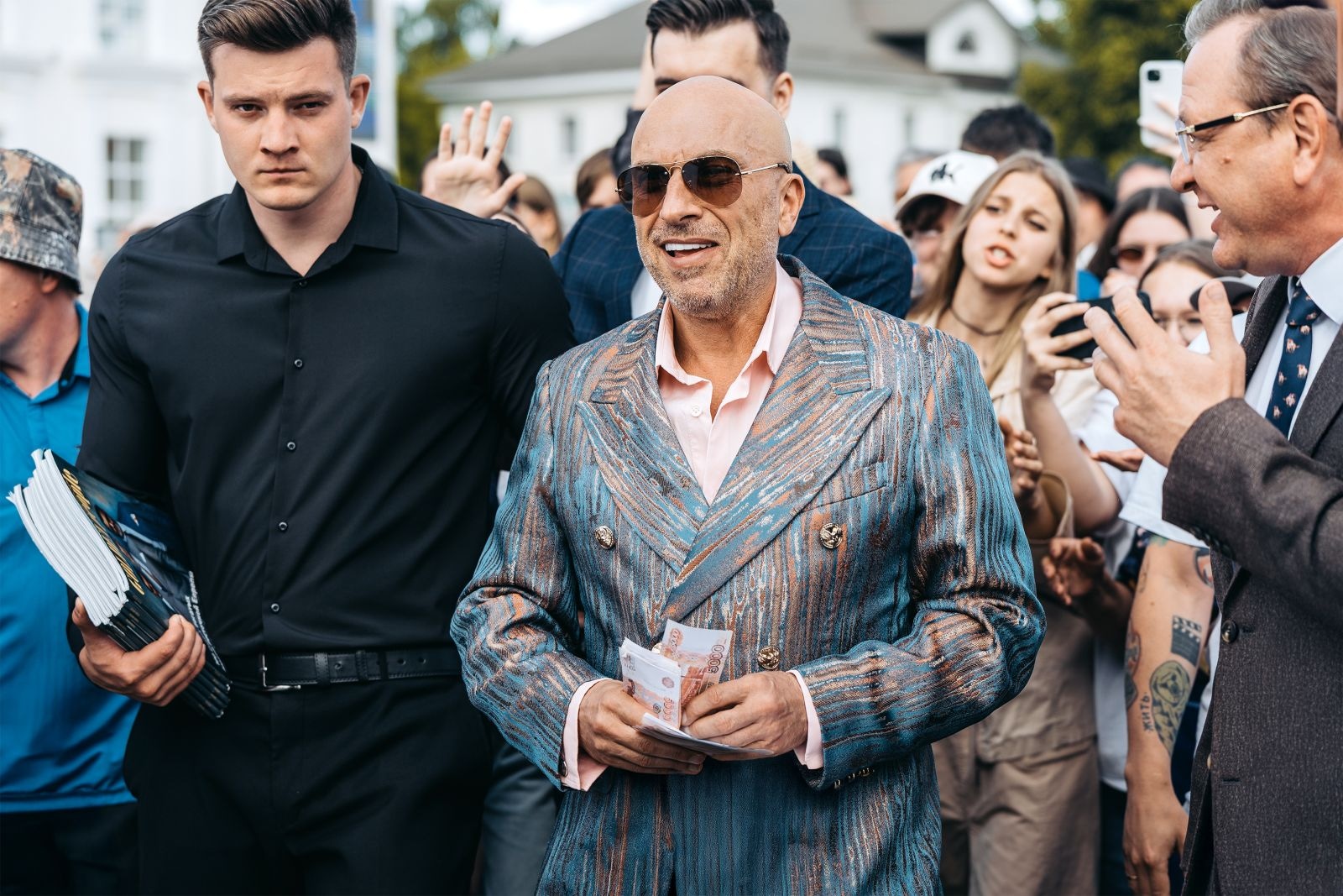 – Дмитрий Нагиев сыграл главную роль Василия Баранова. Артист рассказал, что после прочтения сценария хотел отказаться от съемок, однако Жоре Крыжовникову удалось убедить его изменить свое решение. По сюжету персонаж Нагиева приезжает домой из-за границы спустя 30 лет, чтобы посетить праздник, устроенный в его честь. Герой из-за иностранных санкций лишается своих миллиардов и решает во чтобы то ни стало снова разбогатеть, думая, что таким образом заслужит уважение и любовь близких. Дмитрий поделился, что, несмотря на богатый опыт в кино, ему не сразу удалось сыграть так, как требовал режиссер. Однако, как въедливый артист, он серьезно и вдумчиво подошел к поставленной задаче и сумел добиться нужного результата. Всего на счету исполнителя 130 картин, публика помнит его героев в лентах «Актерище», «Чикатило», «В активном поиске».