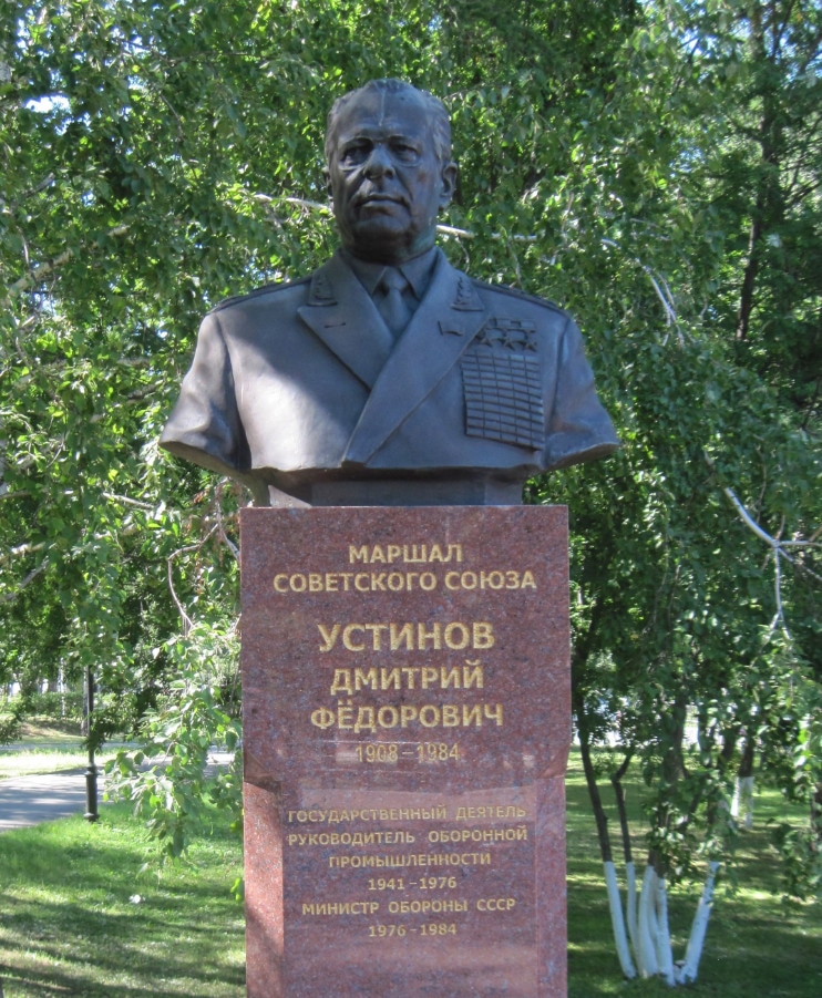 В родной для Устинова Самаре в 2014 году назвали улицу в его честь. А еще с 1977 года там стоит бронзовый бюст в память о маршале. Другое изваяние, представленное на фото выше, установлено в Ижевске.