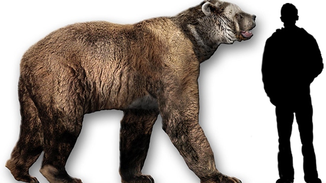 Самым крупным медведем в истории называют короткомордого пещерного медведя. Этот вид жил когда-то в Южной Америке. По подсчетам ученых существовали такие медведи более 500 тысяч лет назад.