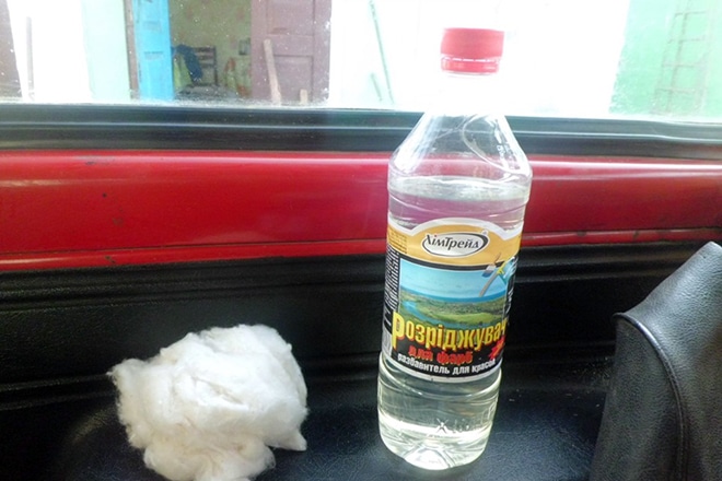 - Самый популярный из них – применение медицинского спирта. Нанесите его на ватный диск и начните оттирать маркер, который постепенно исчезнет с пластика.