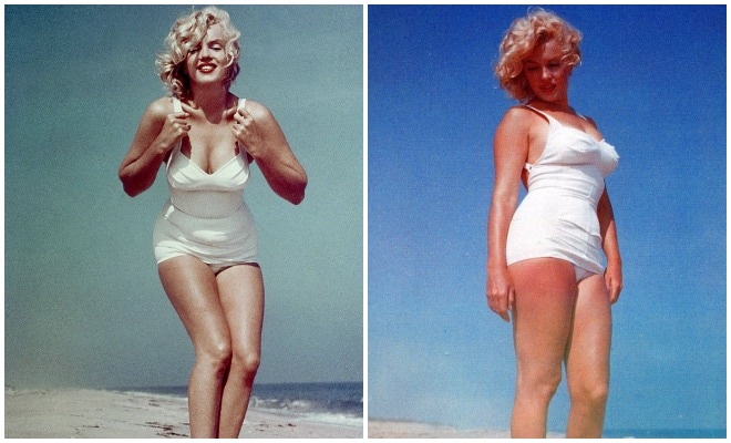В 1956 году культовая американская актриса Мэрилин Монро сфотографировалась в цельном белом купальнике на пляже Лонг-Айленда. Это фото стало символом того, что красота не зависит от размера одежды, и даже слегка полноватое тело при правильном подходе может выглядеть привлекательно. По некоторым данным, у звезды был 46-й размер одежды — довольно большой по стандартам Голливуда.