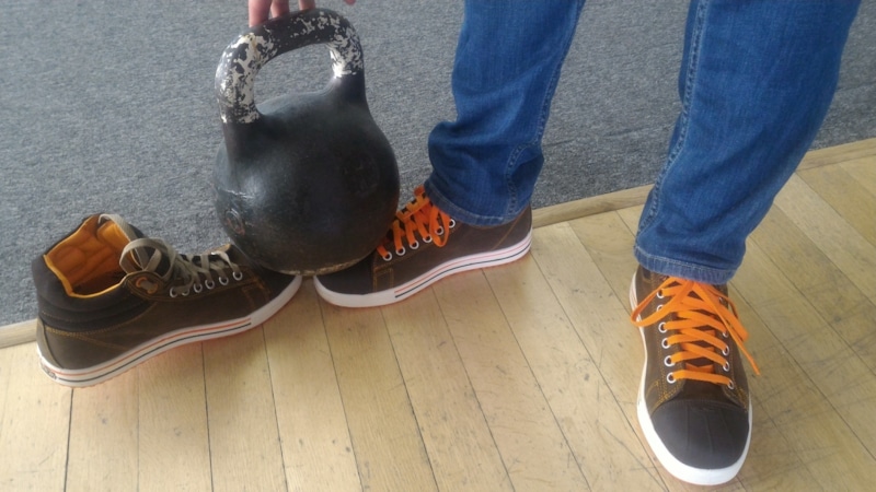 По его словам, «особенное очарование» обуви придают оранжевые шнурки и подошва, выполненные с использованием корпоративного оранжевого цвета. Обновку уже окрестили «терминаторскими кедами» и успешно протестировали при помощи ударов по гире.