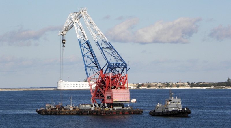 Плавучий кран врезался в Крымский мост