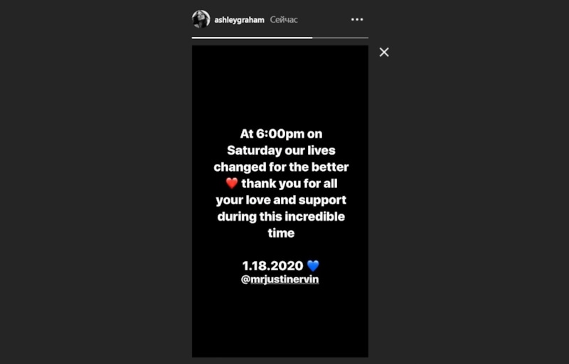 Роды британской модели состоялись еще вечером в субботу, но рассказать об этом она решила лишь спустя два дня. В сторис инстаграм-аккаунта Эшли сообщила, что родила ребенка в 18 часов. «Наша жизнь изменилась к лучшему», — написала знаменитость и поблагодарила фанатов за любовь и поддержку.