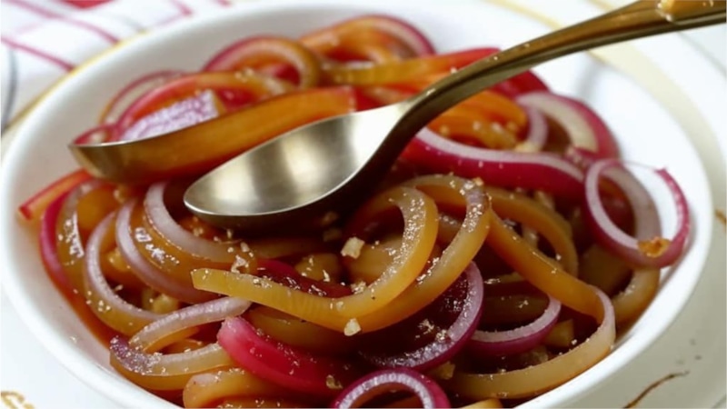 Маринованный лук за 5 минут: легкая и быстрая в приготовлении пикантная закуска к мясу и не только — рецепт от опытного повара