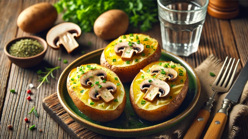 На картошечке грибок — раскрывай скорей роток: рецепт вкусных «лодочек» из картофеля с лесными грибами и сыром — необычно и аппетитно
