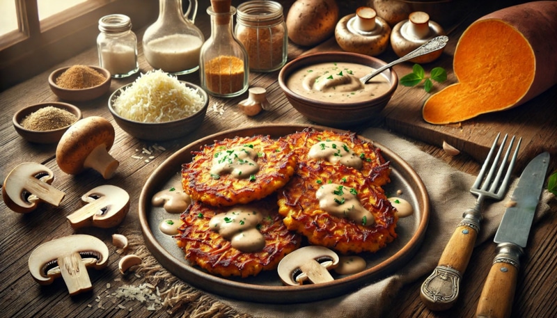 Сладкий батат в новом амплуа: как приготовить ароматные драники с грибным соусом — превосходный рецепт для закусочного блюда