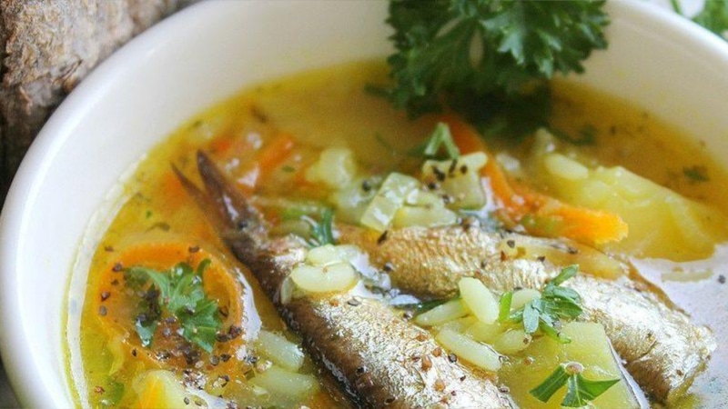 Оригинальный рисовый суп со шпротами готовят на основе бульона или воды. Отваривают в ней рис и овощи. Заправляют зеленью и специями. Дзен-канал «Домашний ресторан» советует приготовить быстрый суп без добавления крупы.
