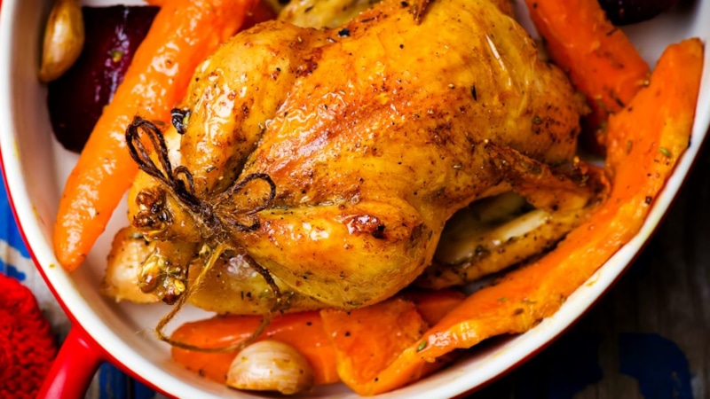 Встречаются виды угощений, в которых сразу соседствует основное блюдо с гарниром. Например, цыплята с сытной начинкой.
