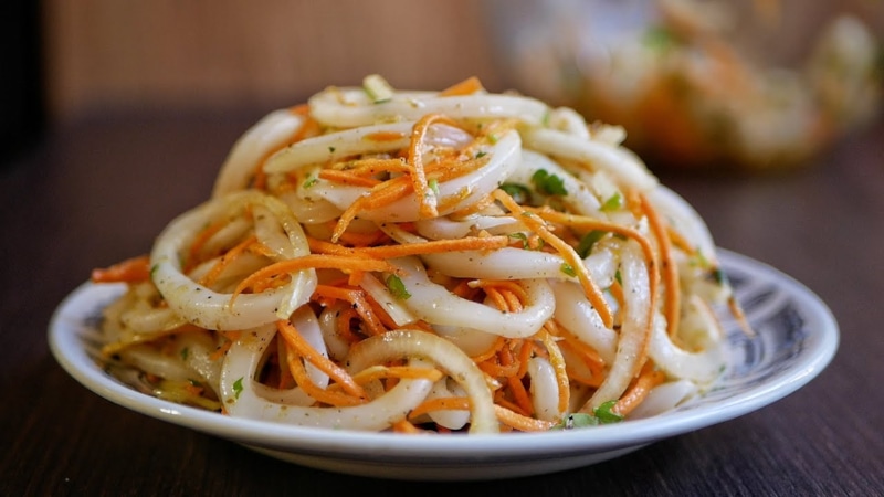 Хе из кальмаров и моркови: пикантная нежность по-корейски — блюдо с насыщенным вкусом