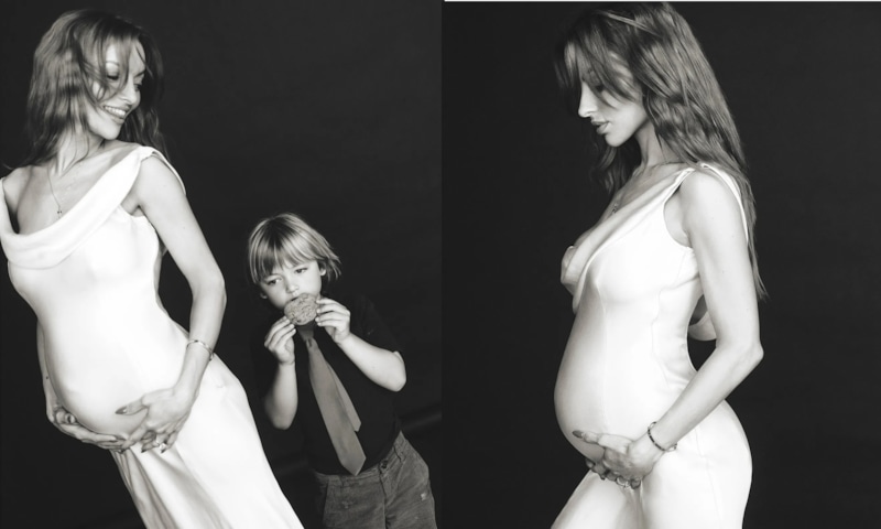 На одном из кадров рядом с будущей мамой оказался её шестилетний сын Титан, которого она родила от бывшего партнёра Александра Рэйта. Малыш увлечённо ест печенье, а Франческа с теплотой наблюдает за ним, обнимая свой живот. Имя отца второго ребёнка звезда пока не раскрывает, хотя до объявления о беременности её неоднократно видели в компании Александра.