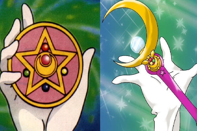 Перевоплотиться в Сейлор Мун девушке помогает брошь, которую подарила Луна – кошка, ставшая наставником героини. Помимо трансформации, аксессуар помогает школьнице отыскать других защитников Земли. Первым оружием воительницы стала диадема. Украшение излучает свет, который нейтрализует демонов. Не менее важную роль в экипировке Сейлор Мун играет лунный жезл, способный справиться с любыми проявлениями зла.