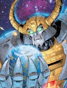Юникрон представляет подвид гигантских роботов. Его размер превышает объем некоторых планет, а космический корабль оказывается в десятки раз меньше его глаза. Миссия персонажа заключается в покорении вселенной. Персонаж поглощает миры, чтобы достичь поставленной цели. Герою чужды сопереживание и жалость.