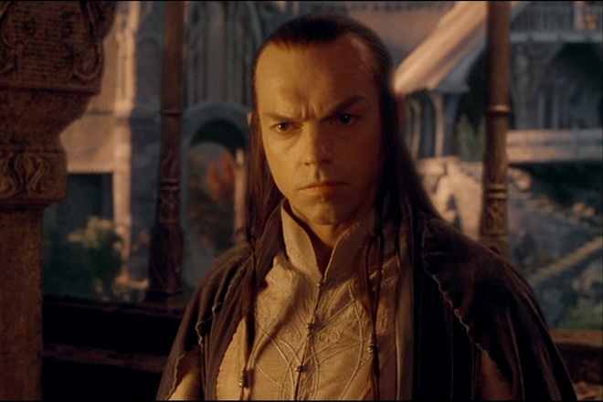 В фильмах режиссера Питера Джексона, снятых по мотивам «Властелина колец» и «Хоббита», образ эльфийского владыки Элронда воплотил актер Хьюго Уивинг, известный зрителям по роли агента Смита в трилогии «Матрица». Актер сыграл также Дэвида, отца главного героя, в сериале «Патрик Мелроуз», посвященном темным сторонам жизни британской аристократии.